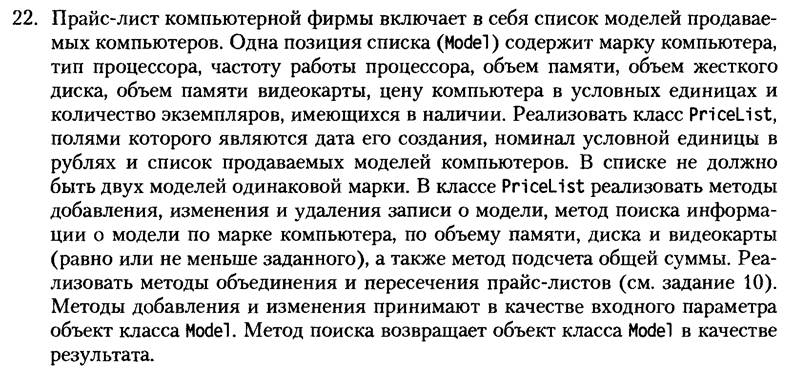 Вывод: После создания объекта, либо изменения его параметров, выводить сведения об объекте (число элементов, сами элементы) либо (параметры PriceList ДатаСоздания, НоминалУЕ, ЧислоЭлементовСписка, ОбщаяСумма, затем СписокМоделей(Марка, ТипПроцессора, Частота, ОбъемПамяти, ОбъемHDD, ОбъемВидеоПамяти, Цена, Количество).