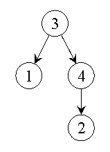 Структура некоторой корпорации такова, что каждый служащий, кроме служащих нижнего звена, является непосредственным начальником не менее чем одного другого служащего (возможно, служащего нижнего звена). Во главе компании стоит Президент, которому подчиняются либо непосредственно, либо по должностной иерархии все остальные служащие. Каждый служащий (разумеется, кроме Президента) имеет одного непосредственного начальника. Все служащие в этой структуре имеют индивидуальные номера от 1 до N (2 £ N £ 1000). Пример описания такой структуры приведён на рисунке, где сотрудник с номером 3 является Президентом и непосредственным начальником сотрудников с номерами 1 и 4, а сотрудник с номером 4 является непосредственным начальником сотрудника с номером 2. Структура корпорации является корпоративной тайной и строго охраняется.