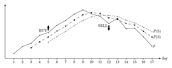 - an average stock price for the previous m days, and P(n) - an average stock price for the previous n
