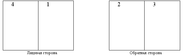листе бумаги: лицевая сторона должна содержать сначала страницу 4, потом - 1,