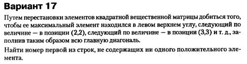 1231. Семинар 4. Двумерные массивы. Вариант 17