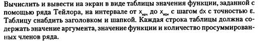 аргумента, значение функции, количество просуммированных членов ряда и расчет