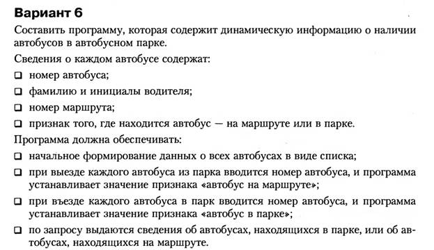 Здесь <код операции> 1 – выезд из парка, 2 – въезд в парк0 - признак конца ввода списка.