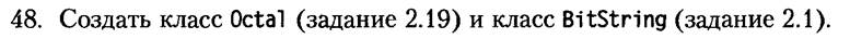 Ввод:  Создать два объекта базового класса, введя их размерность и характеристики, затем создать два объекта производного класса BitString, введя их размерность и характеристики, после этого создать два объекта производного класса Octal, введя их размерность и характеристики. Затем выполнять действия, предписанные командами ввода: