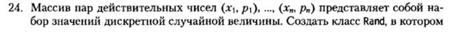 Вывод: вывести исходные массивы, затем значения математического ожидания и дисперсии для значений аргумента и значений функции, после этого вычислить значение интеграла методом Монте-Карло.