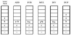 stack. The DUP command pushes an additional copy of the top-most stack element